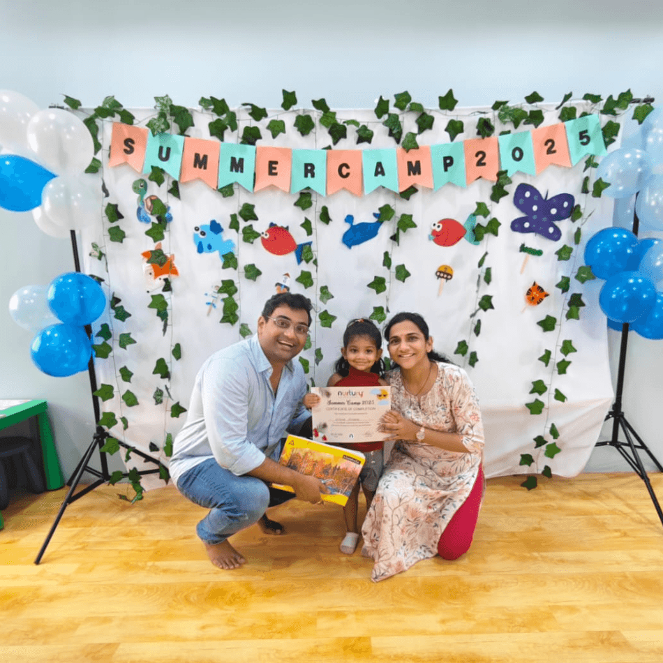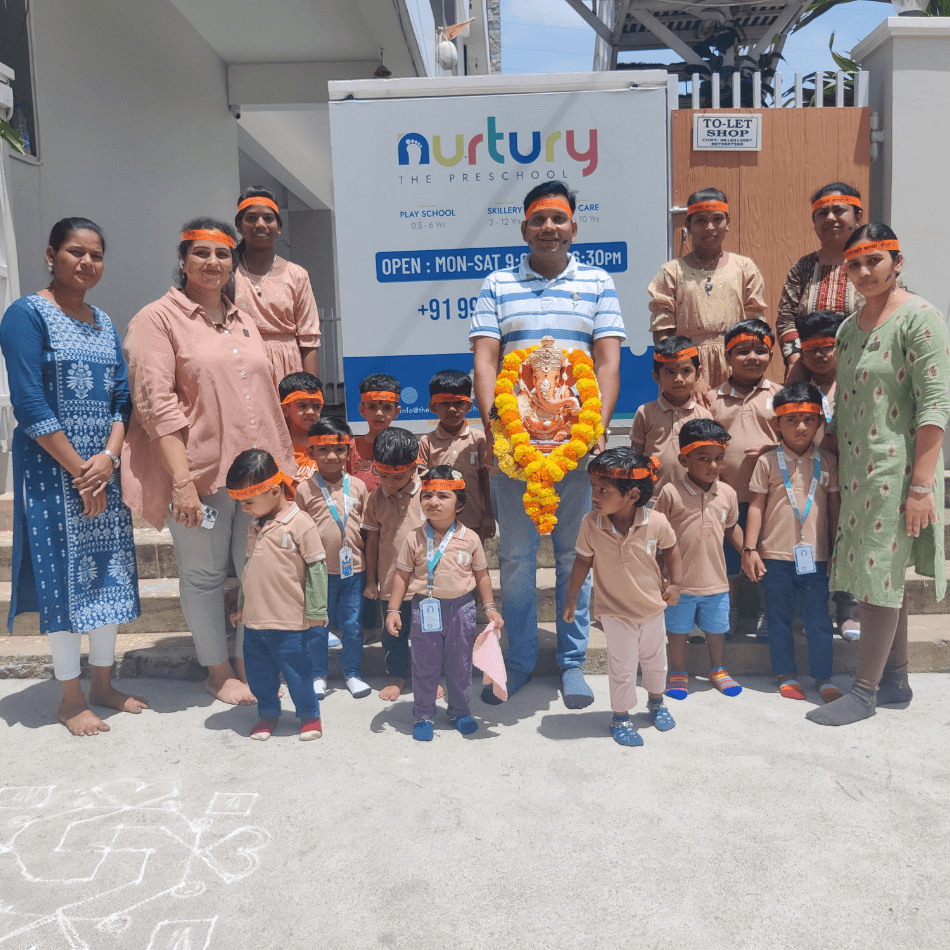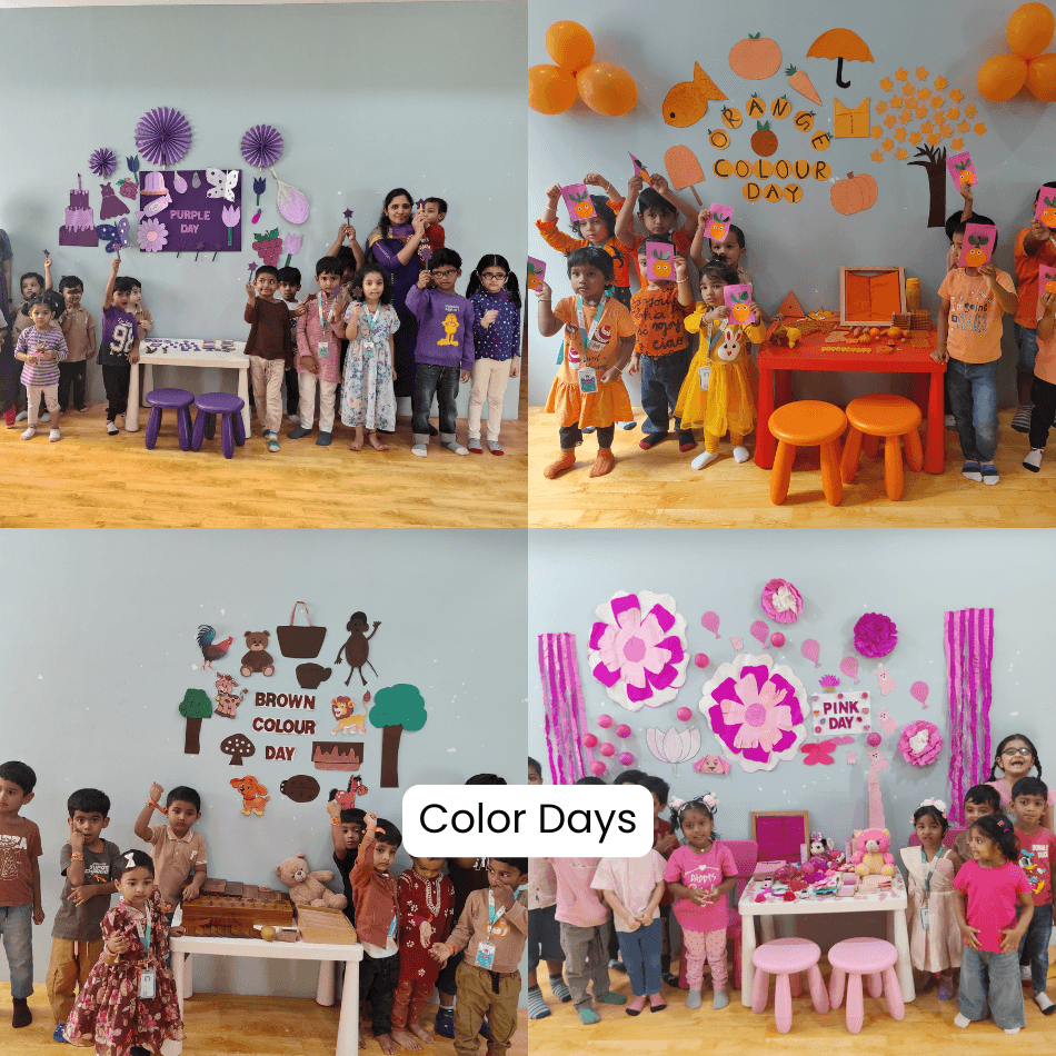 At The Nurtury, we integrate thematic learning into our curriculum to make education more relatable and engaging for children. Each month, a new theme is introduced to guide our activities and lessons. For instance, our “Green Day” celebration introduced children to the color green through nature walks, plant watering, and craft activities using green objects. Our gallery showcases these fun-filled days where children experience hands-on learning about colors, shapes, seasons, and cultural festivals.